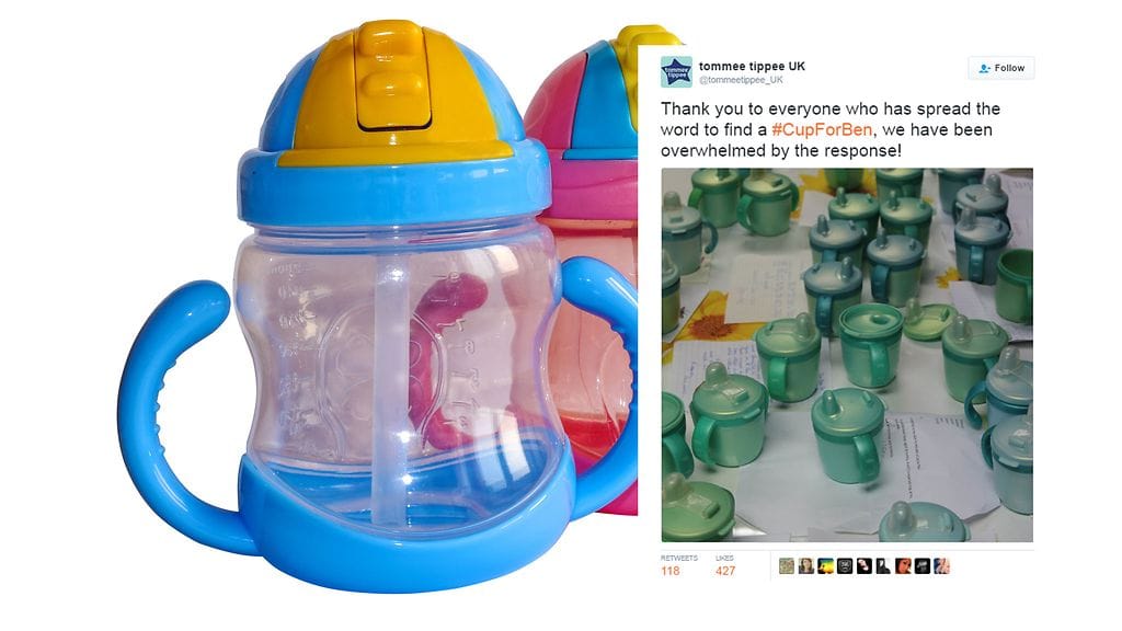 Ongelma piili siinä, ettei kyseistä nokkamukimallia valmisteta enää. Itse asiassa sen valmistus lopetettiin jo 10 vuotta sitten. Tämän vuoksi isä julkaisi sosiaalisessa mediassa etsintäkuulutuksen, jossa toivoi, että ihmiset lähettäisivät kyseisiä mukeja Benille. Sosiaalisen median valta olikin huikaiseva, ja metsästys tuotti tulosta.