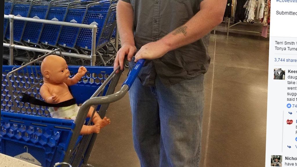 – Hän kertoi, että se on hänen tyttärensä vauvanukke nimeltä Davey, ja tyttö halusi sen saavan vaatteita ja sukkia, joten mies nousi autoonsa, ajoi tänne ja osti Daveylle kaksi potkupukua, meni Walmart-kauppaan ja ja osti sille sukkiakin. En voinut uskoa, miten hyvin hän kohtelee tyttärensä vauvanukkea. Se oli uskomatonta.