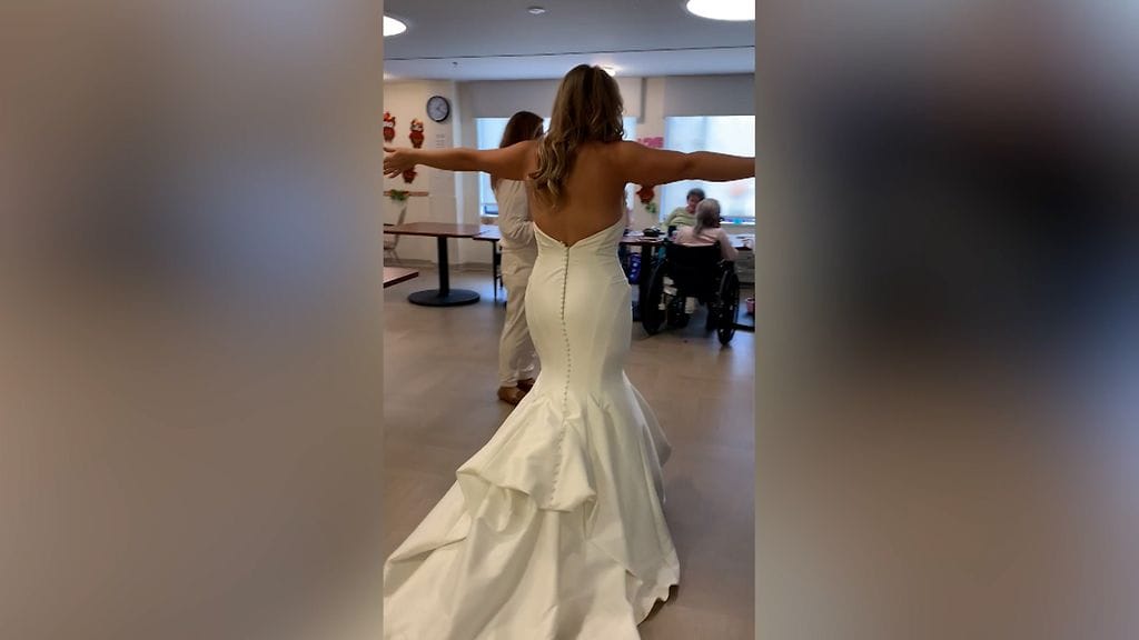 Isoäiti, joka ei voinut osallistua ainoan lapsenlapsensa häihin sai kokea tunteellisen yllätyksen, kun lapsenlapsi ilmaantui hoivakotiin hääpuku päällä.