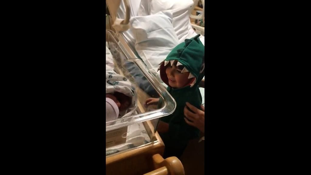 Brianna kertoo, että Sawyer oli malttamattomana odottanut pikkuveljensä tapaamista. Videolla näkyy, kun dinosaurushuppariin pukeutunut pikkupoika Sawyer ryntää sisään sairaalahuoneeseen.
