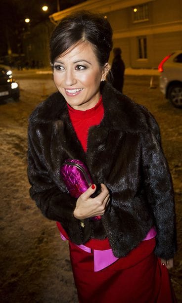 Tumma kaunotar Jaana Pelkonen näytti hurmaavalta punaisessa luomuksessa, jonka yläosa hätkähdytti.