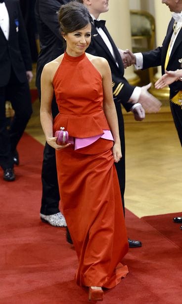 Kokoomuksen kansanedustaja Jaana Pelkonen, 35, pysyi hienostuneelle tyylilleen uskollisena ja edusti Linnan juhlissa kauniissa punaisessa iltapuvussa, jonka yläosaa koristivat laskotukset.