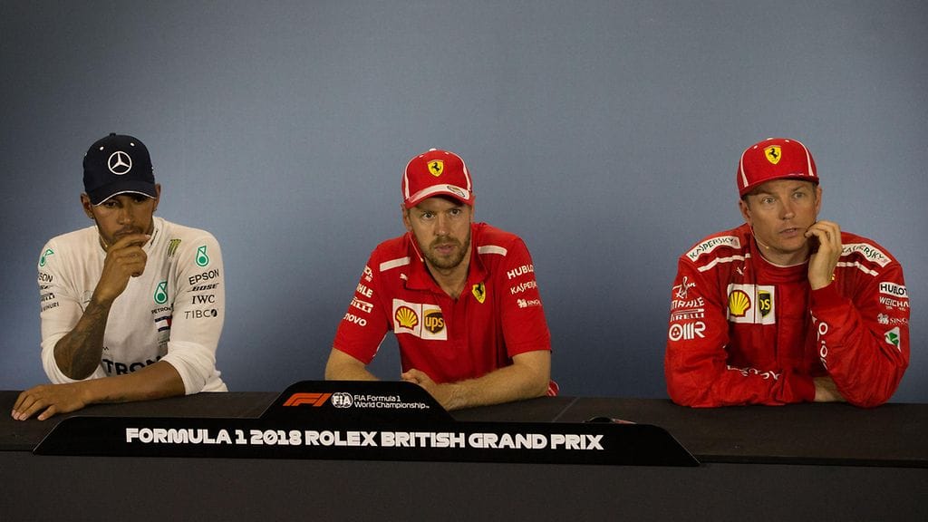 Lewis Hamilton purki turhautumistaan Ferrari-tallin suuntaan Britannian GP:n jälkeen.