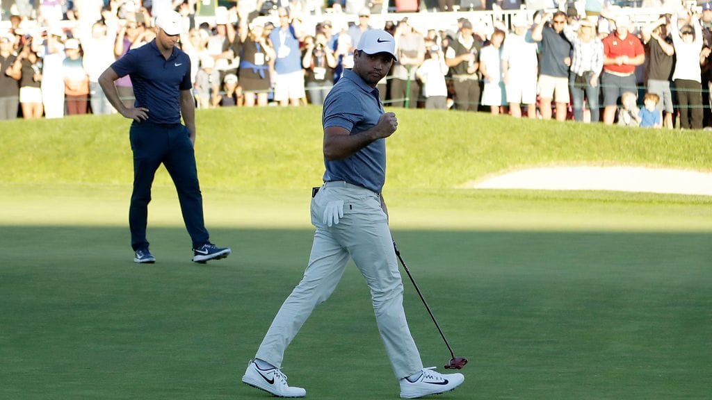 Daylla oli kiperät paikat viidennellä jatkoreiällä, mutta hän onnistui kiskaisemaan kolmannella lyönnillään upean lähestymisen 105 metristä aivan reiän viereen (video jutun pääkuvan paikalla). Kun seuraava putti upposi sisään, Day selvitti reiän birdiellä (4 lyöntiä), kuten Noren.