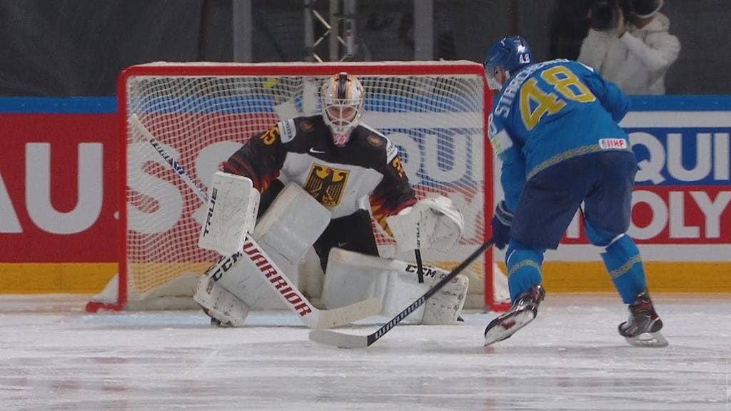 Päätöserään 1-2-tappioasemassa sinnitellyt Kazakstan löysi kuitenkin jälleen uuden vaihteen. Heti erän alussa joukkue sai rangaistuslaukauksen, josta Roman Startshenko napautti jo kolmannen rankkarimaalinsa tässä MM-turnauksessa. Tällä kertaa oli Saksan Mathias Niederbergerin vuoro hämääntyä.