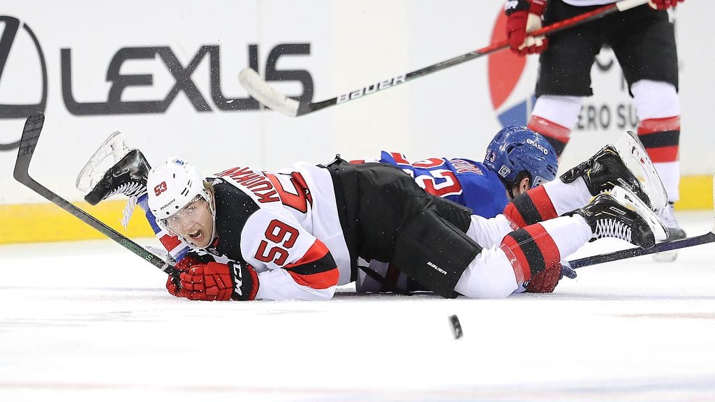Jääkiekon NHL:ssä New Jersey Devilsin suomalaishyökkääjä Janne Kuokkanen syötti peräti kolme maalia, kun Devils otti 5–2-vierasvoiton New York Rangersista.