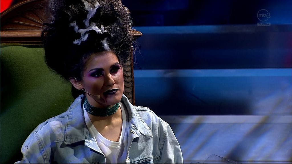 Halloween-faniksi tunnustautuva Jannika B marssi studioon näyttävästi maskeerattuna. Laulajan päässä nähtiin valtaisa peruukki ja näyttävä meikki. Jannika B kertoo viettävänsä Halloweenia vuosittain myös perheen kesken, ja lipsautti lähetyksessä myös kaksimielisen vitsin.