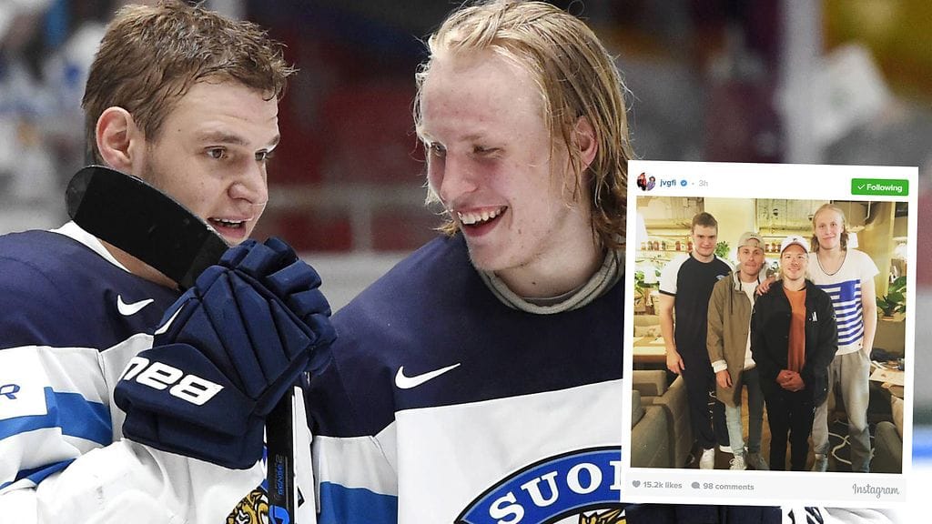 Yhtyeen Instagram-tilillä julkaistiin ilmoinen kuva, jossa poseeraavat myös ykkösketjun maalitykit Alexander Barkov ja Patrik Laine.