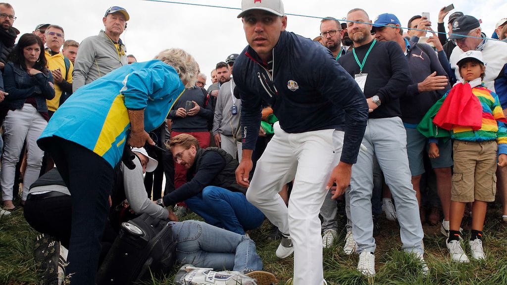 Yhdysvaltalaisen Brooks Koepkan avauslyönti osui naiskatsojaa kasvoihin golfin Ryder Cupissa Pariisissa perjantaina. Myös Dustin Johnson osui lyönnillään katsojaan samalla väylällä.