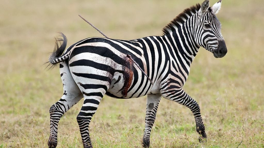 Larry Broutman ja hänen oppaansa olivat Maasai Maran kansallispuistossa safarilla valokuvaamassa eläimiä, kun he huomasivat pienen seepralauman, jonka eräs jäsen kiinnitti huomiota. Eläimen läpi kulki keihäs, joka vaikutti paikallisen Maasai-heimon keihäältä. Erikoista oli, että keihäästä saanut eläin pysyi muun lauman mukana, eikä vaikuttanut kovin sairaalta keihäästä huolimatta.