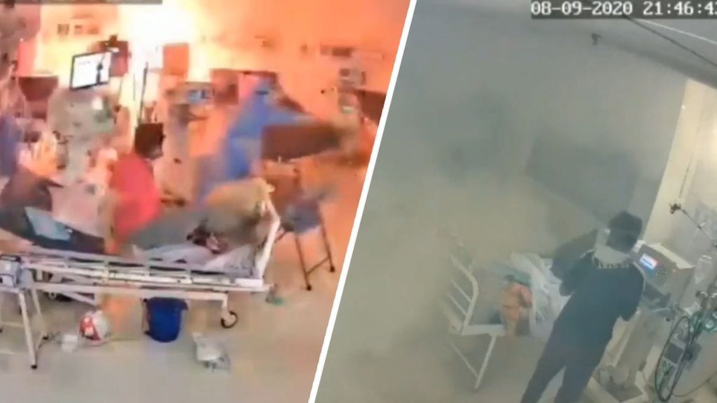 Sairaanhoitohenkilökunta joutui evakuoimaan koronaviruksen takia hoidossa olevia potilaita, kun hengityskone alkoi ensin savuttaa, syttyi tuleen ja lopulta räjähti.