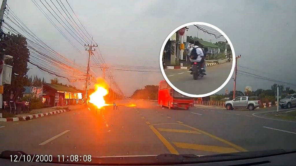 Kaksikko ajoi päin vaijeria, jossa virtasi sähkö. Seuraukset olivat kauheat. Osumasta syntyi räjähdys ja useiden metrien korkuiset liekit.