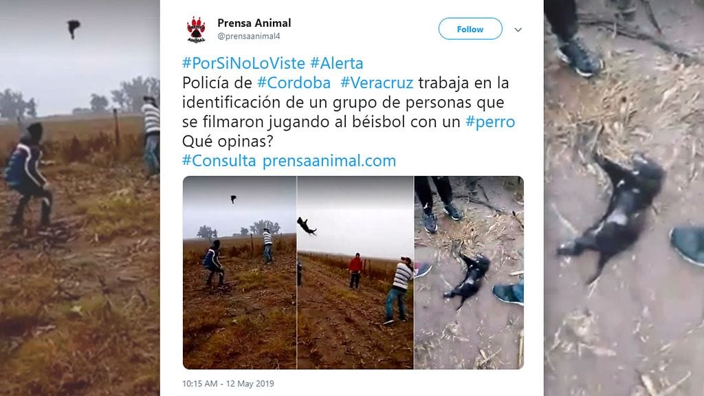 Paikallisten tiedotusvälineiden mukaan miehet löivät koiraa useita kertoja baseball-mailalla Córdoban kaupungissa Veracruzin osalvaltiossa.