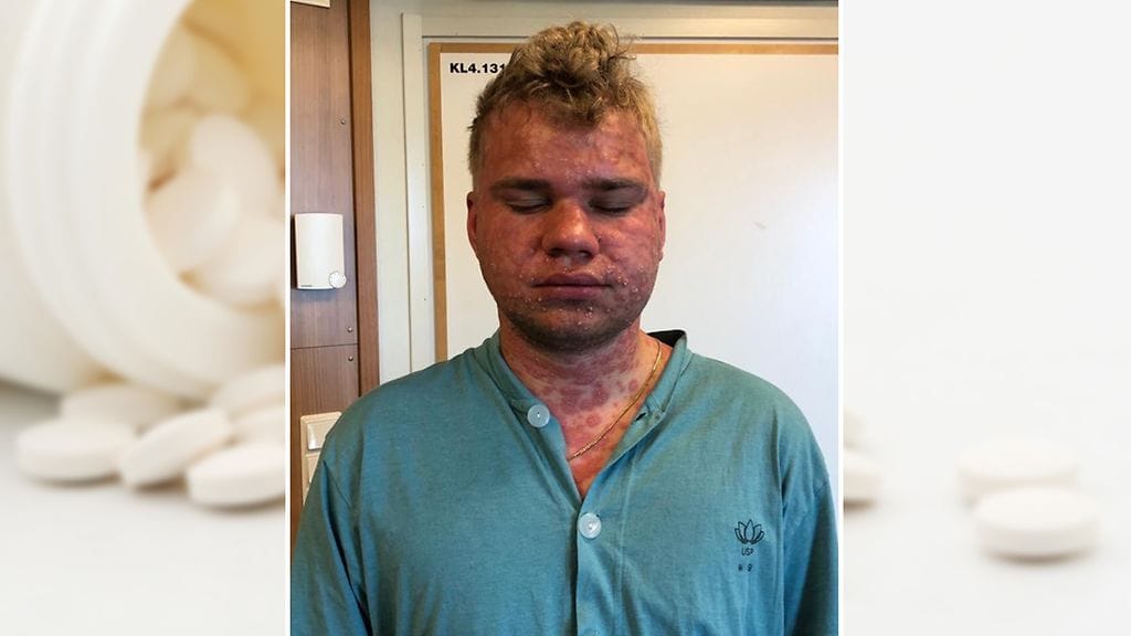 Helsinkiläinen Kim Kujala, 23, koki kauhunhetkiä, kun flunssan oireisiin otettu särkylääke aiheutti kehoon ison, sairaalaan vieneen ihoreaktion.