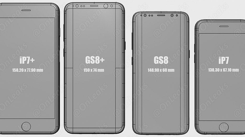 Uusi Galaxy S8+ tulee olemaan varsin kookas puhelin, sillä se on selkeästi myös Samsungin pahamaineista Galaxy Note7:ää pidempi ja yhtä leveä.