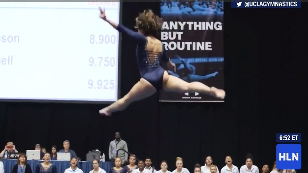 UCLA Gymnasticsin Twitter-tilille jaetulla videolla on jo liki 37 miljoonaa katselukertaa, satoja tuhansia tykkäyksiä ja jakoja. "10 ei ole tarpeeksi tälle lattiaohjelmalle", videon yhteydessä kirjoitetaan.