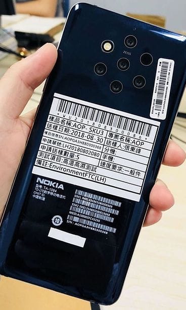 Tällä kertaa kuvan puhelimessa, mahdollisesti tulevalta mallinimeltään Nokia 9, nähdään ilmeisesti viisi aukkoa takakameroille, yksi LED-kuvausvalolle sekä yksi laserille ja mahdollisille muille antureille. Aiemmasta kuvasta poiketen nyt aukot muodostavat symmetrisen kuvion. Kuvan puhelimen teippauksissa nähdään myös mallikoodi TA-1094. Takana ei nähdä sormenjälkilukijaa, koska sen odotetaan olevan puhelimessa osana näyttöä. Kameroiden keskellä nähdään myös vasta maininta vain ZEISS-brändistä, mutta lisäksi kamerapuhelin brändättäneen myös PureView-lisänimellä.