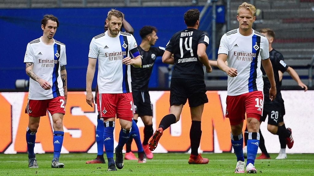 Sandhausen meni johtoon Rick Van Drongelenin omalla osumalla, ja Kevin Behrens tuplasi edun 21. minuutilla. Vierailla oli mahdollisuuksia kasvattaakin johtoaan HSV:n puolustuspään virheiden seurauksena.