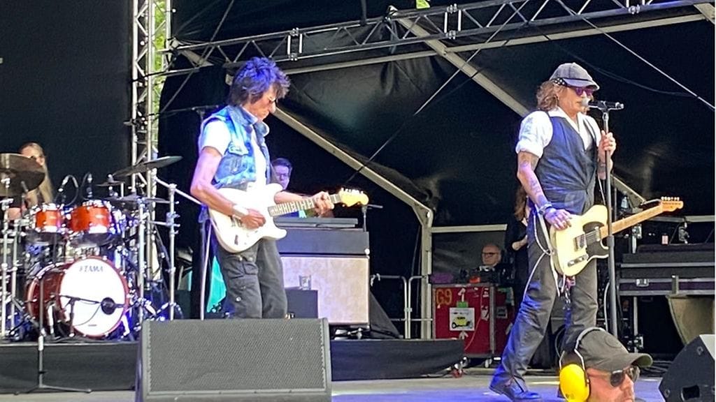 Johnny Depp esiintyy tällä hetkellä Helsingin Kaisaniemessä Helsinki Blues Festival -tapahtumassa.