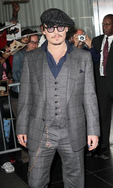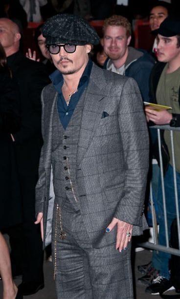 Hattuihin mieltyneellä Deppillä oli yllään kolmiosainen harmaa puku ja siihen sopiva lakki. Persoonallisesta tyylistään tunnettu Depp oli lakannut osan kynsistään sinisiksi. Näyttelijän tunnuspiirteeksi nousseet silmälasit sopivat hyvin asukokonaisuuteen.