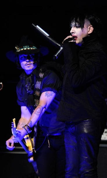 Johnny Depp rakastaa näyttelemisen lisäksi musiikkia. Nyt mies nähtiin yllätysvieraana rokkari Marilyn Mansonin keikalla.