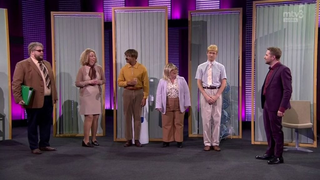 Yllä olevalta tilanteelta näet, kuinka huvittava tilanne eteni ja kuinka hihittelevät näyttelijät saivat sketsin esitettyä loppuun asti!