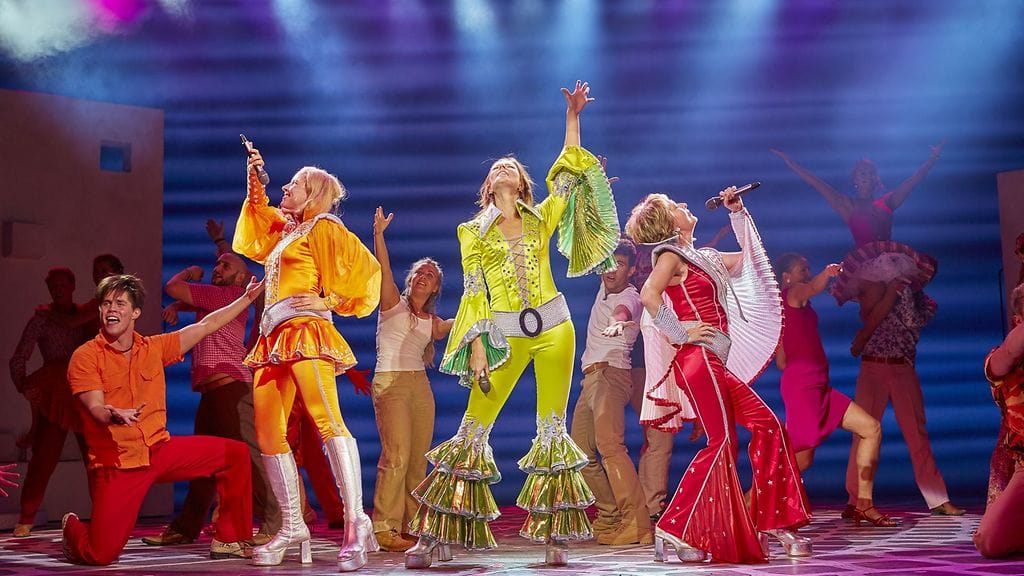 Siinä niitä nyt on. Rivitolkulla hopeisina hohtavia disco-saappaita, röyhelöisiä haalareita ja painavia koristevöitä. Näissä vetimissä Mamma Mia! -musikaalin tähdet joraavat yleisön hurmokseen.
