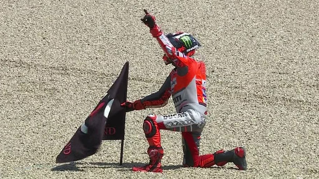 Ducati oli Mugellon radalla vahva, sillä Lorenzon tallikaveri Andrea Dovizioso tuli toiseksi, vaikka lopussa italialaisen vauhti hyytyi uhkaavasti. Rossi ei aivan kyennyt nousemaan Dovizioson ohi, mutta ylsi kuitenkin kolmanneksi keltaisen yleisömeren mieliksi.