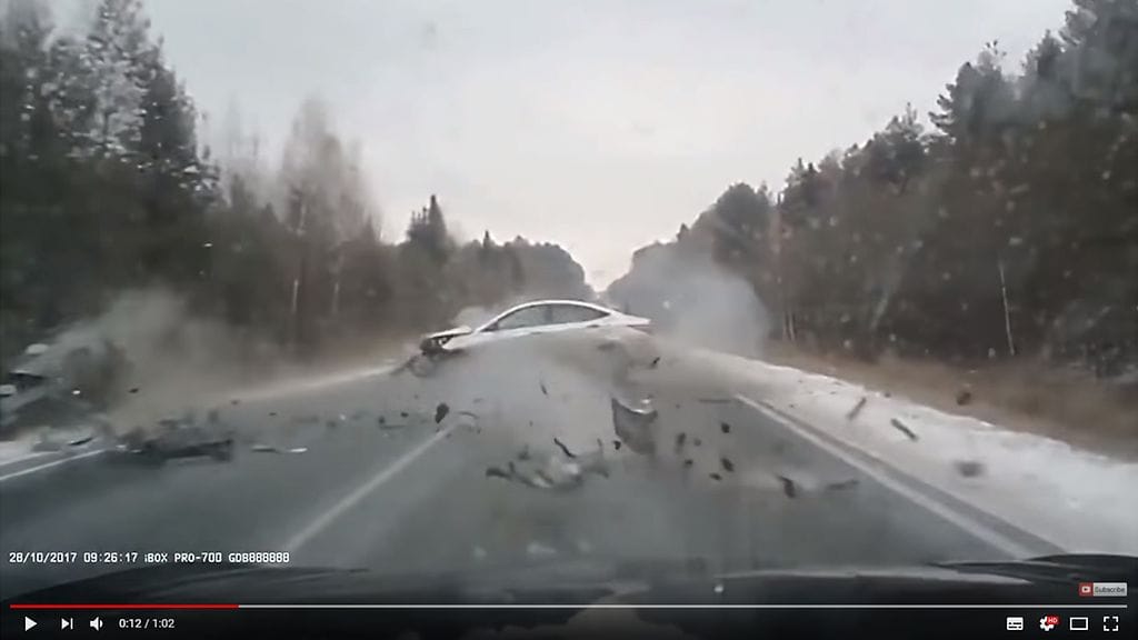 Lauantaiaamuna Venäjällä kuvatulla videolla käy nopeasti selväksi, että edellä ajaneen auton kuljettajalla ei ole enää tilanne hanskassa. Takana tullut kuljettaja näkee, miten Hyundai lähtee heittelehtimään, mutta sen sijaan, että hidastaisi vauhtiaan, tämä näyttää videon perusteella jatkavan tasan samalla nopeudella.