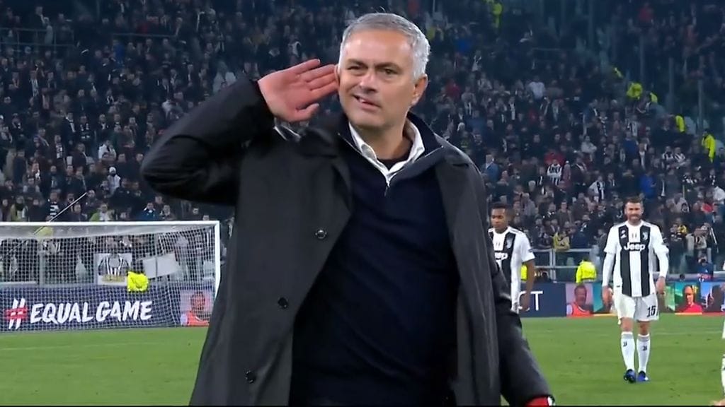 Mourinho on ollut Juventus-fanien hampaissa entisenä Inter-luotsina, ja hän otti voitosta kaiken irti loppuvihellyksen jälkeen. United-manageri käveli nurmelle ja heristi korvaansa viheltävälle Juve-yleisölle.