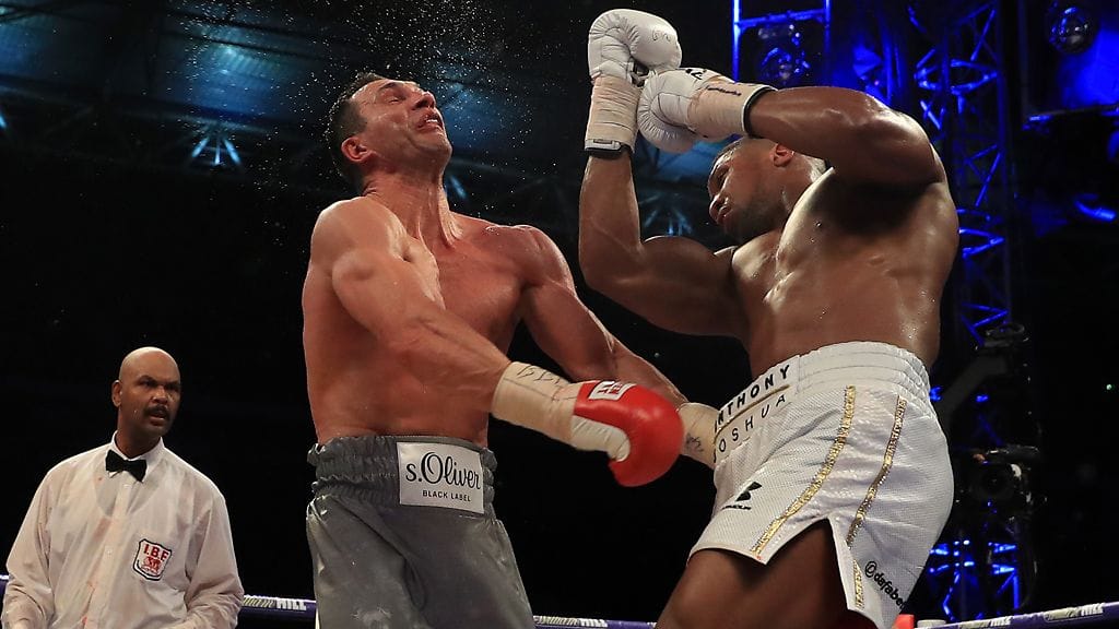 Joshua kukisti Klitshkon MM-ottelun 11. erässä, kun hän pudotti ukrainalaisen kahdesti kanveesiin, minkä jälkeen tuomari päätti keskeyttää 90 000 katsojan edessä käydyn taiston.