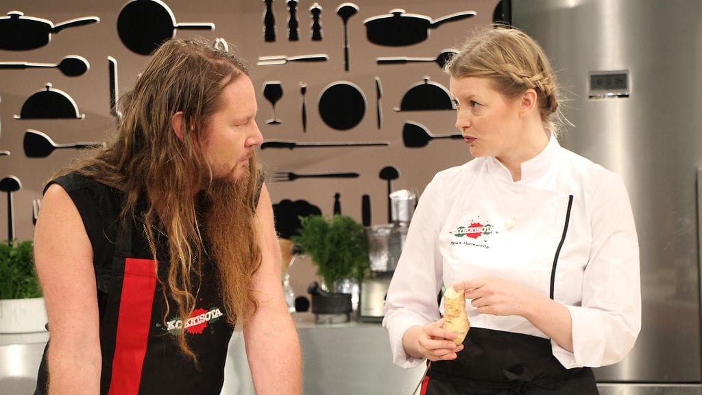 Kokkisodassa vieraillut Jouni Hynynen heitti haastavan tehtävän Pipsa Hurmerinnalle tuodessaan mukanaan kokkauksen raaka-aineiksi koskenkorvaa ja läskiä.