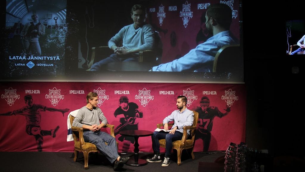 Vuonna 2010 komean kiekkouransa päättänyt Juha Lind vieraili Sports Bar Casino Helsingissä järjestetyssä Peli-illassa.