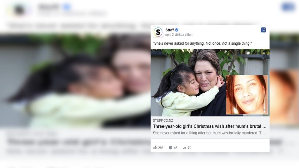 Entinen kumppani tappoi 3-vuotiaan Viviennen äidin kaksi vuotta sitten. Nyt tyttö asuu Marie-tätinsä luona. Täti herkistyi kyyneliin, kun pieni tyttö toivoi itselleen jotain ensimmäistä kertaa äitinsä julman kuoleman jälkeen.