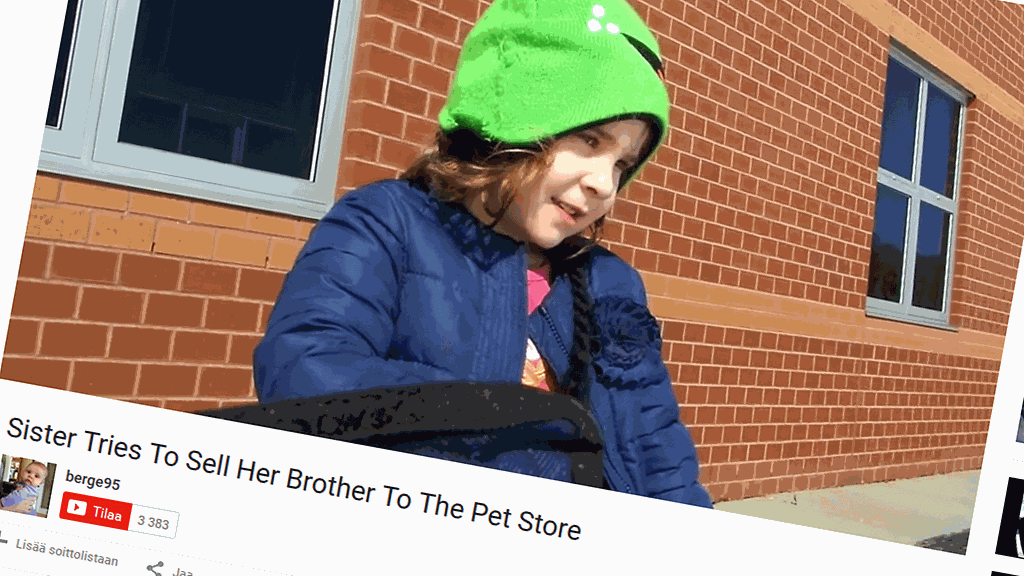 YouTube-käyttäjä berge95 latasi palveluun hulvattoman videon, jolla hänen Rachel-tyttärensä suunnittelee myyvänsä pikkuveljensä Jasonin lemmikkikauppaan.