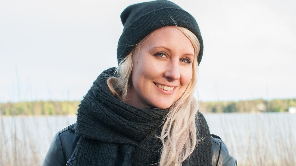 Kuvassa Elina poseeraa sivuttain kameralle.