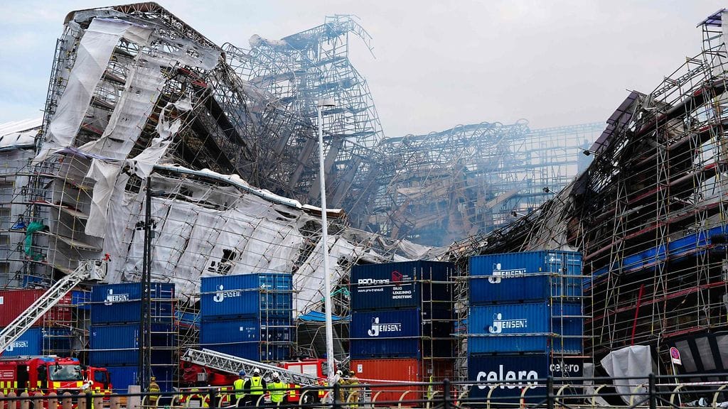 Aiemmin torstaina Tanskan pelastuslaitos kommentoi, etteivät he pysty takaamaan, että pörssitalon vanha muuraus kestää palon aiheuttamat vahingot.