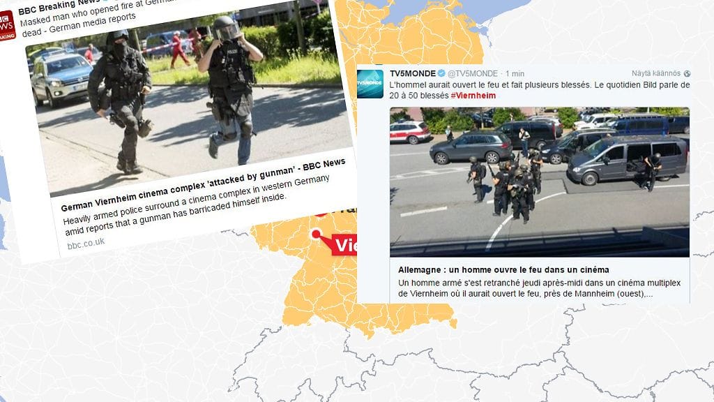 Saksalaispoliisi tiedottaa, että se on ampunut elokuvateatterikompleksiin hyökänneen miehen. Ammuskelussa ei loukkaantunut sivullisia. Varmistamattomien tietojen mukaan kyse olisi ollut epäonnistuneesta ryöstöyrityksestä. *