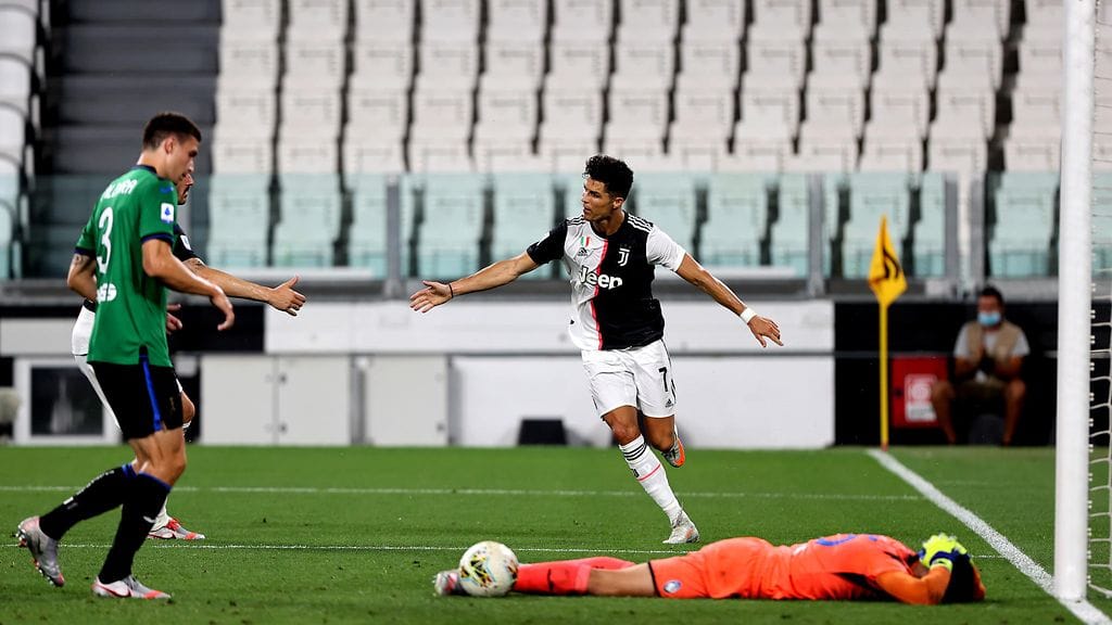 Cristiano Ronaldon rankkarimaalit nostivat Juventuksen lähelle torinolaisseuran yhdeksättä peräkkäistä jalkapallon Serie A -titteliä. Juventus pelasi myöhään lauantaina 2–2-tasapelin Atalantaa vastaan, kun se nousi kaksi kertaa tappiolta tasoihin.