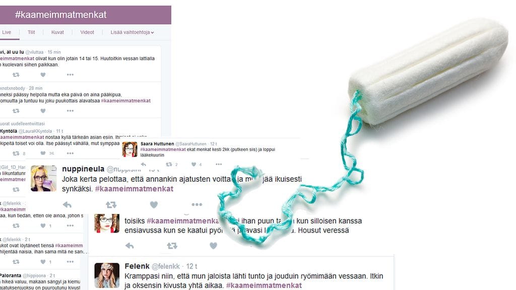 Naiset jakavat tarinoita kamalimmista kuukautisistaan Twitterissä hashtagilla #kaameimmatmenkat. Moni Twitter-käyttäjä on tviitannut hashtagilla vain todetakseen, että ymmärtää nyt oman onnekkuutensa – kaikki eivät joudu kärsimään kammottavia tuskia jok'ikinen kuukausi.