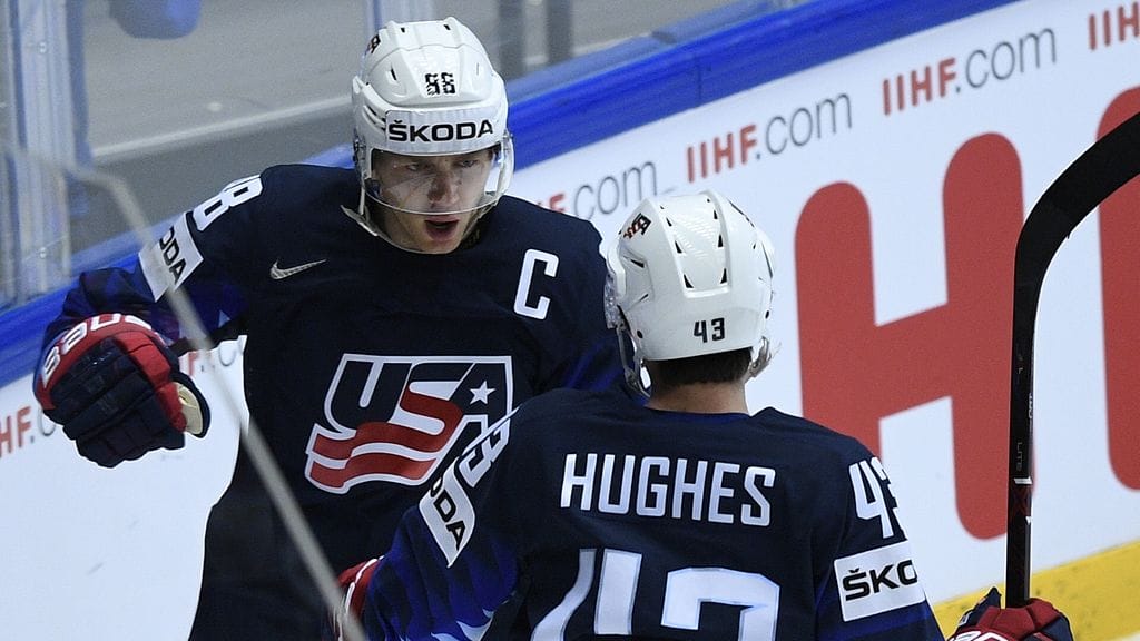 USA:n joukkueen kuopus Jack Hughes täytti tiistaina 18 vuotta. Hughesin joukkuetoveri Patrick Kane vitsaili hulvattomasti nuoren suurlupauksen juhlapäivän kustannuksella.