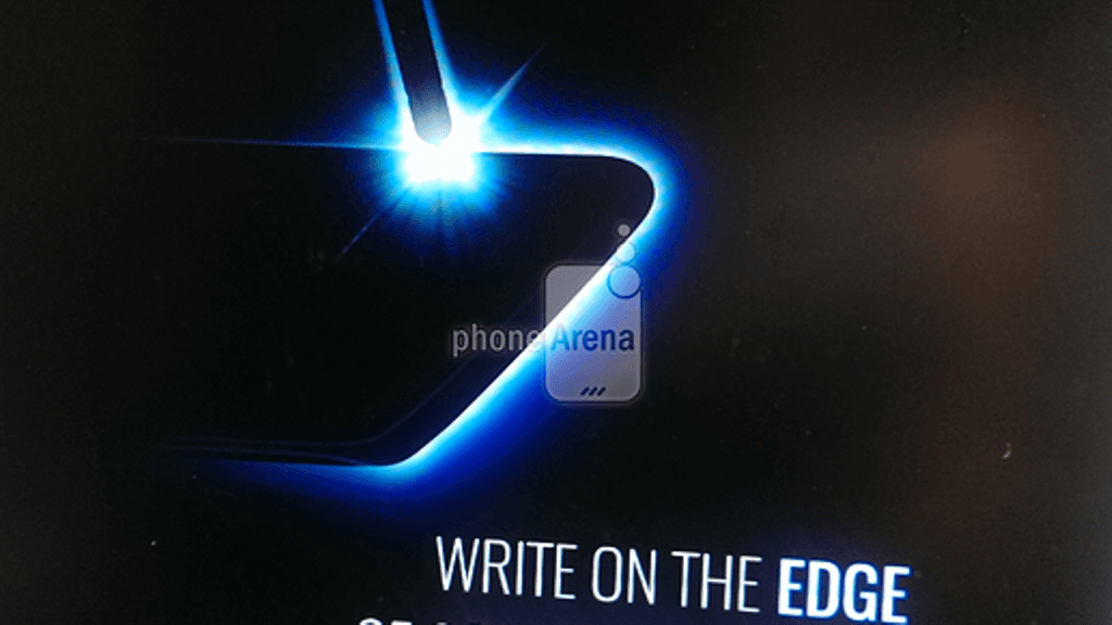 Kuvassa näkyy Samsung-tyyliin takaa valaistu laitteen siluetti sekä kynä. Näiden rinnalla on teksti ”write on the edge of something great” eli ”kirjoita jonkin suuremmoisen reunalle”. Lausahdukseen sisällytetty sanaleikki sallii sille kaksi lukutapaa, mutta molemmat antavat selkeästi ymmärtää, että laidoilta kaartuva edge-näyttö löytyisi laitteesta.