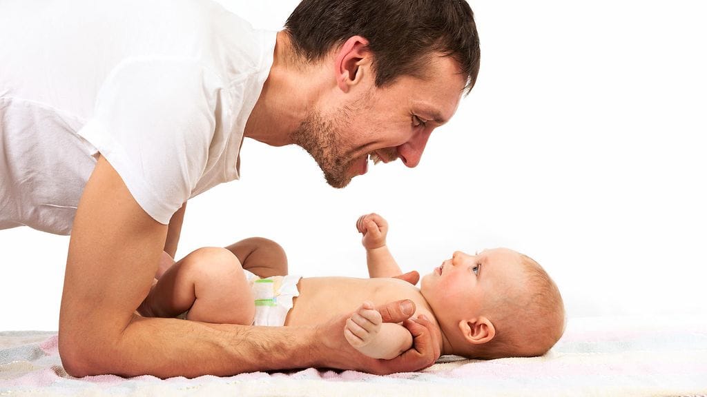 Isä nojautuu eteenpäin ja alkaa laulaa. Vauvan reaktio tuo hymyn kasvoille huononakin päivänä.