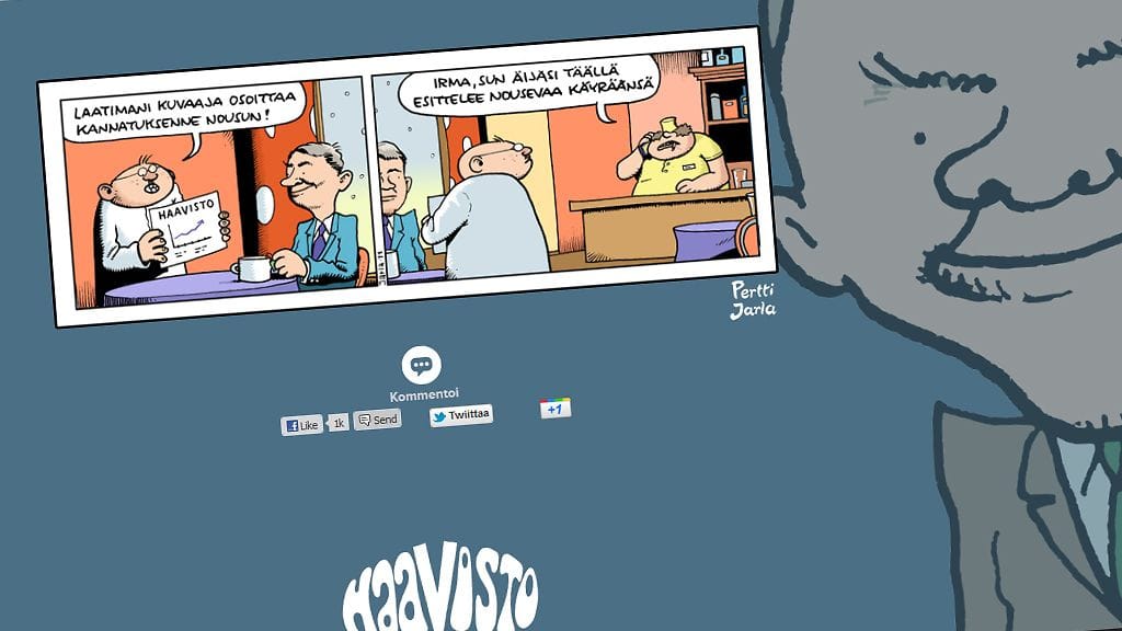 Kakkonen on ykkönen -sivustolle on koottu tähän mennessä kaksi sarjakuvataiteilija Pertti Jarlan ronskia sarjakuvastrippiä. Stripeissä seikkailevat kulttisarjakuva Fingerporista tutut hahmot, mutta myös Haavisto on sarjakuvissa tavalla tai toisella mukana.