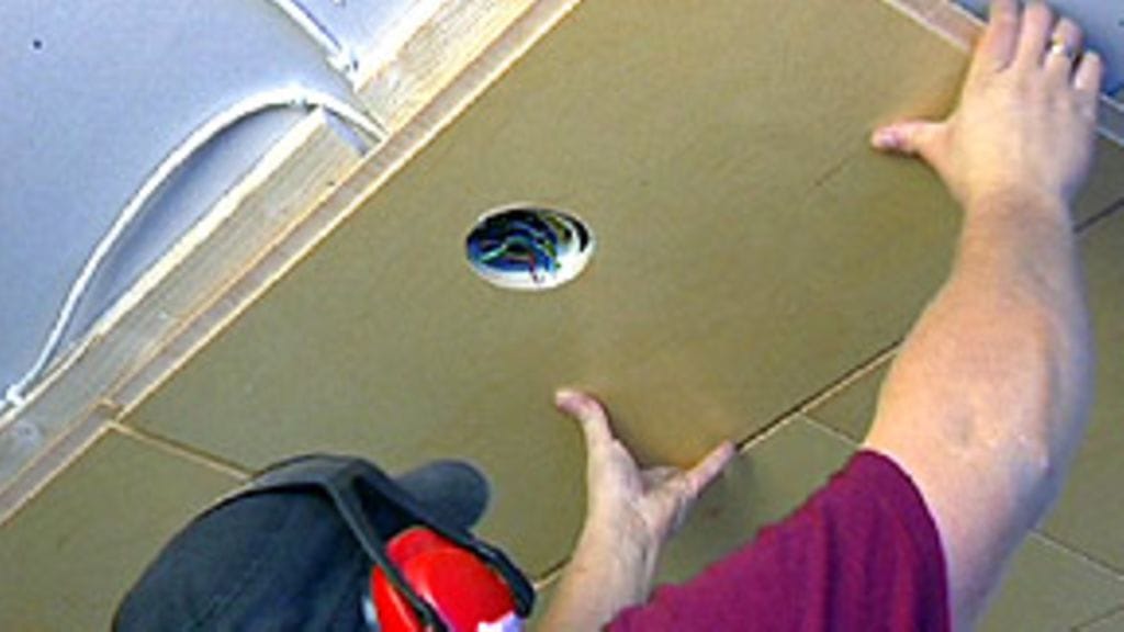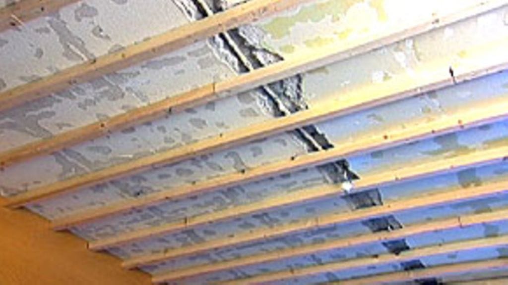 Sisäkatto tehtiin ympäripontatuista, molemmin puolin vesiohenteisella lakalla käsitellyistä sisustusvanerilevyistä. Nyt käytetyn, kirkkaalla lakalla viimeistellyn pinnan lisäksi on valittavissa muitakin värivaihtoehtoja: tummemman tai vaaleamman ruskea sekä harmaa. Lisäksi on tietysti puuvalmis levy, jonka jokainen voi käsitellä tarkalleen haluamansa sävyiseksi. Molemminpuolinen käsittely takaa sen, ettei puu ala myöhemmin kieroilla. Tämähän pitää itse asiassa tehdä kaikelle puutavaralle – jopa paksulle liimapuulevylle. Levyt ovat hyötyleveydeltään 454 mm ja -pituudeltaan 732 mm: valmistajan mukaan on todettu, että tämän kokoinen levy on katossa ihmisen silmälle kaikkein miellyttävin.