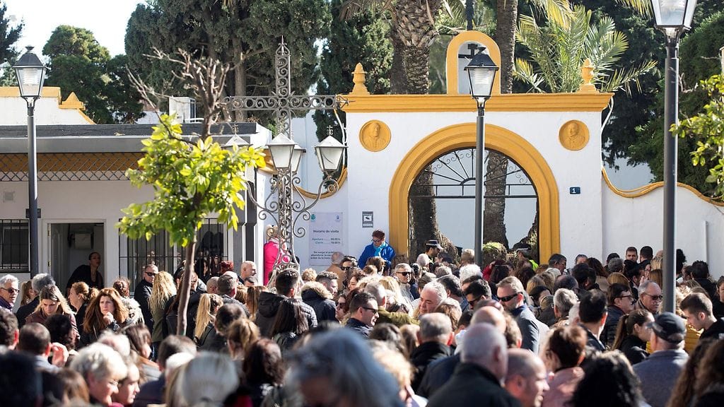 Sadat espanjalaiset saapuivat osoittamaan tukeaan kaksivuotiaan Julenin vanhemmille, kun porauskaivoon pudonnut poika laskettiin tänään haudan lepoon.
