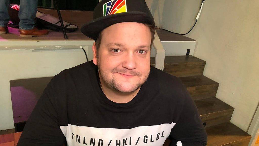 Näyttelijä Kalle Lamberg valmistautuu Kingi-ohjelman suoriin lähetyksiin. Mies muistelee, että livelähetykset eivät ole aina menneet ihan putkeen.