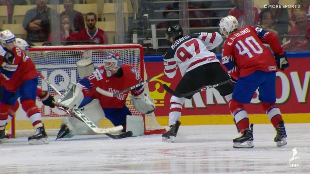 McDavidin urakkaa helpotti norjalaispuolustajien lepsu puolustaminen, sillä hän pääsi nousemaan maalille täysin vapaasti.