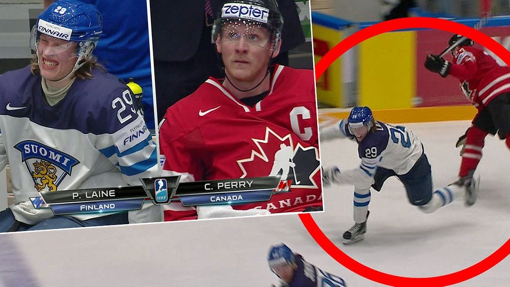 Kanadan tähtipelaaja Corey Perry luisteli varomattomasti päin Patrik Lainetta jääkiekon MM-kisojen alkulohkon päätösottelussa.