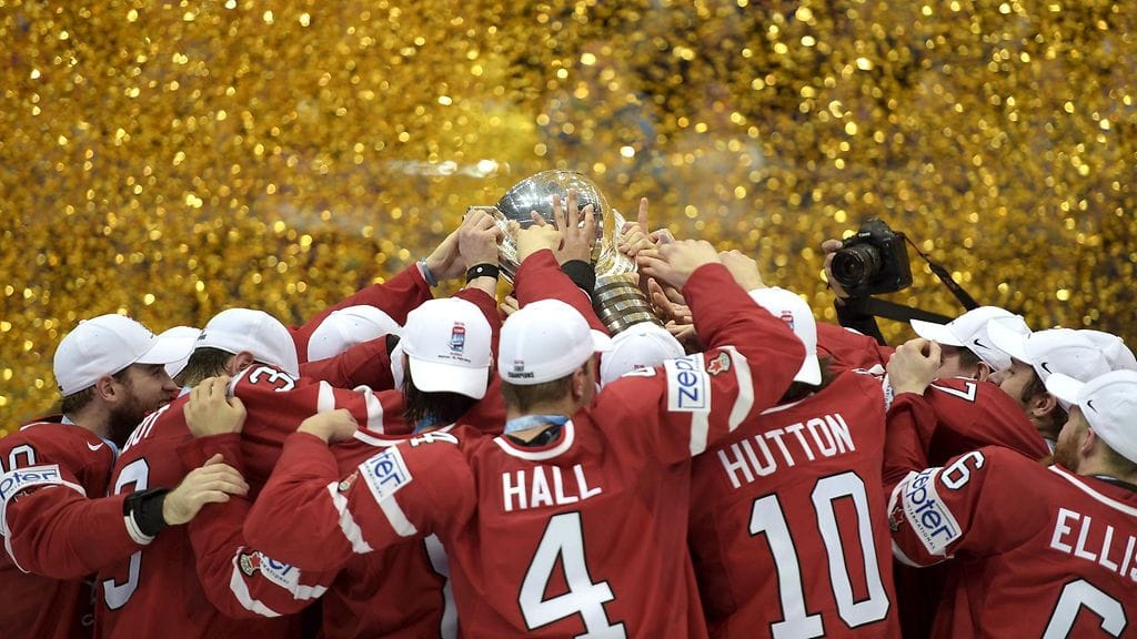 Kanadan pelaajat riemuitsivat sitä, miten he riisuivat Suomen aseista jääkiekon MM-finaalissa.
